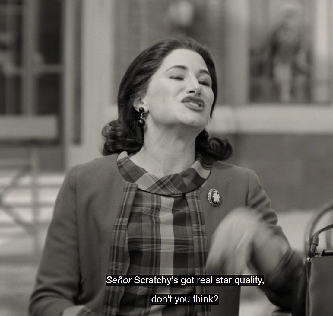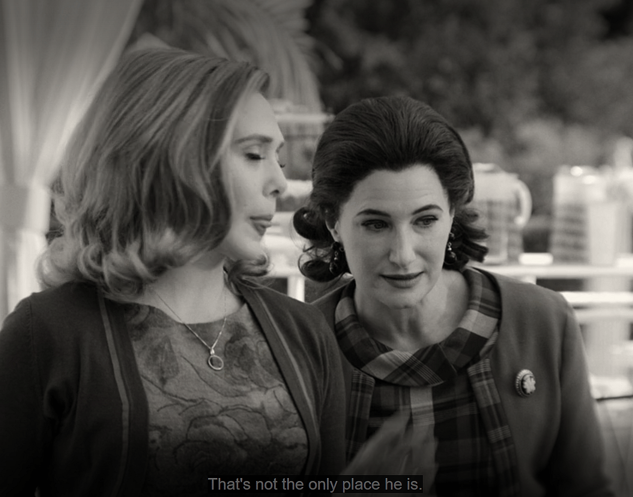 Kathryn Hahn’s Agnes would then whispers to Wanda saying, “That’s not the only place he is.”