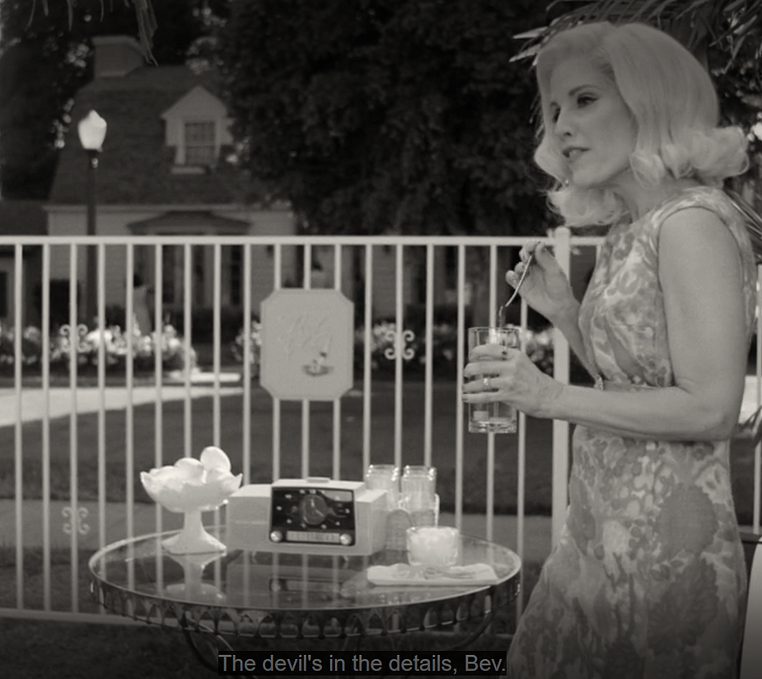 During the tea party scene, Emma Caulfield Ford’s Dottie Jones says, “The devil’s in the details, Bev.”