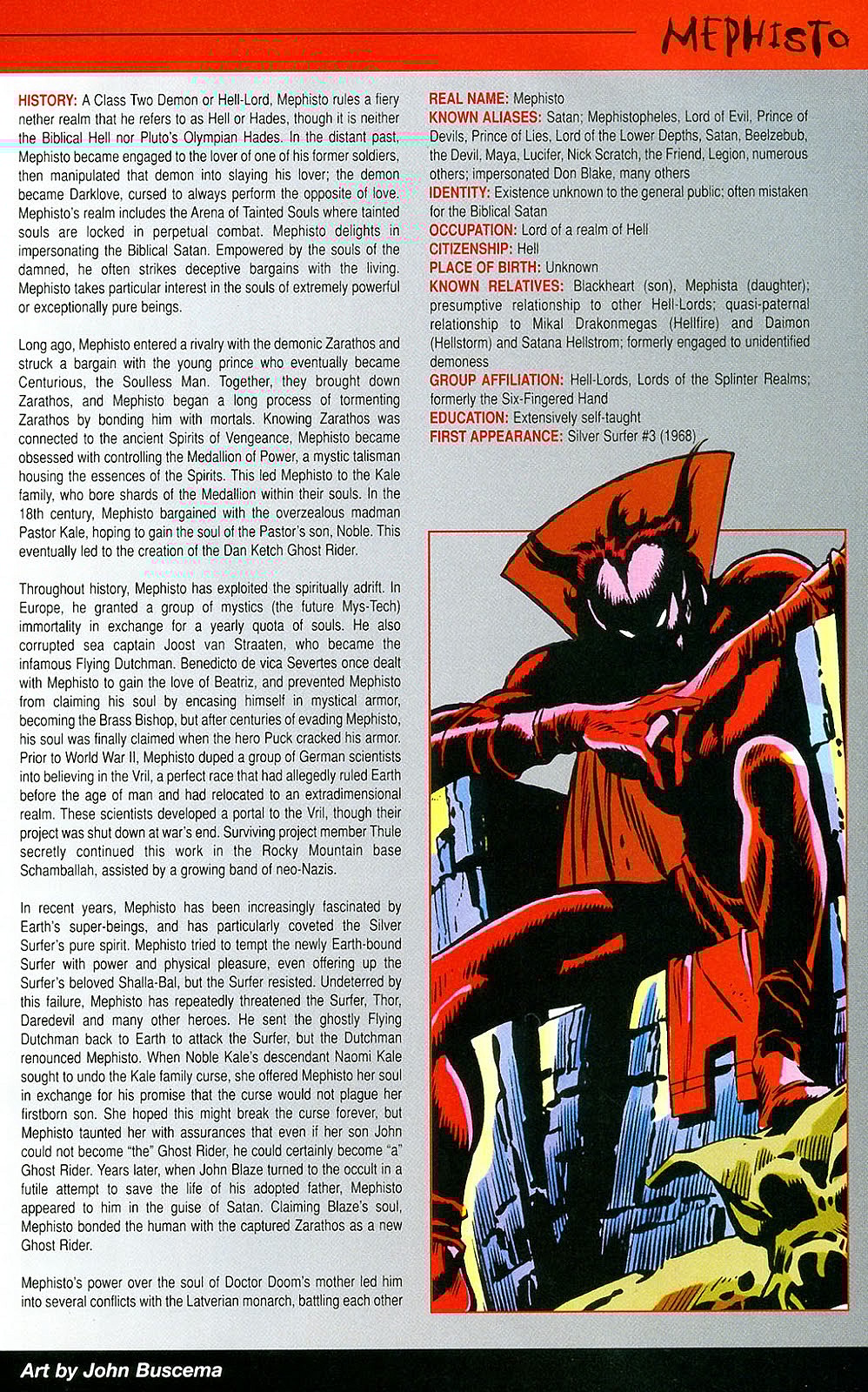 Schaeffer stated, “There was never any conscious intention on my part to create any Mephisto red herrings, because I didn’t know who Mephisto was until I started doing press.”