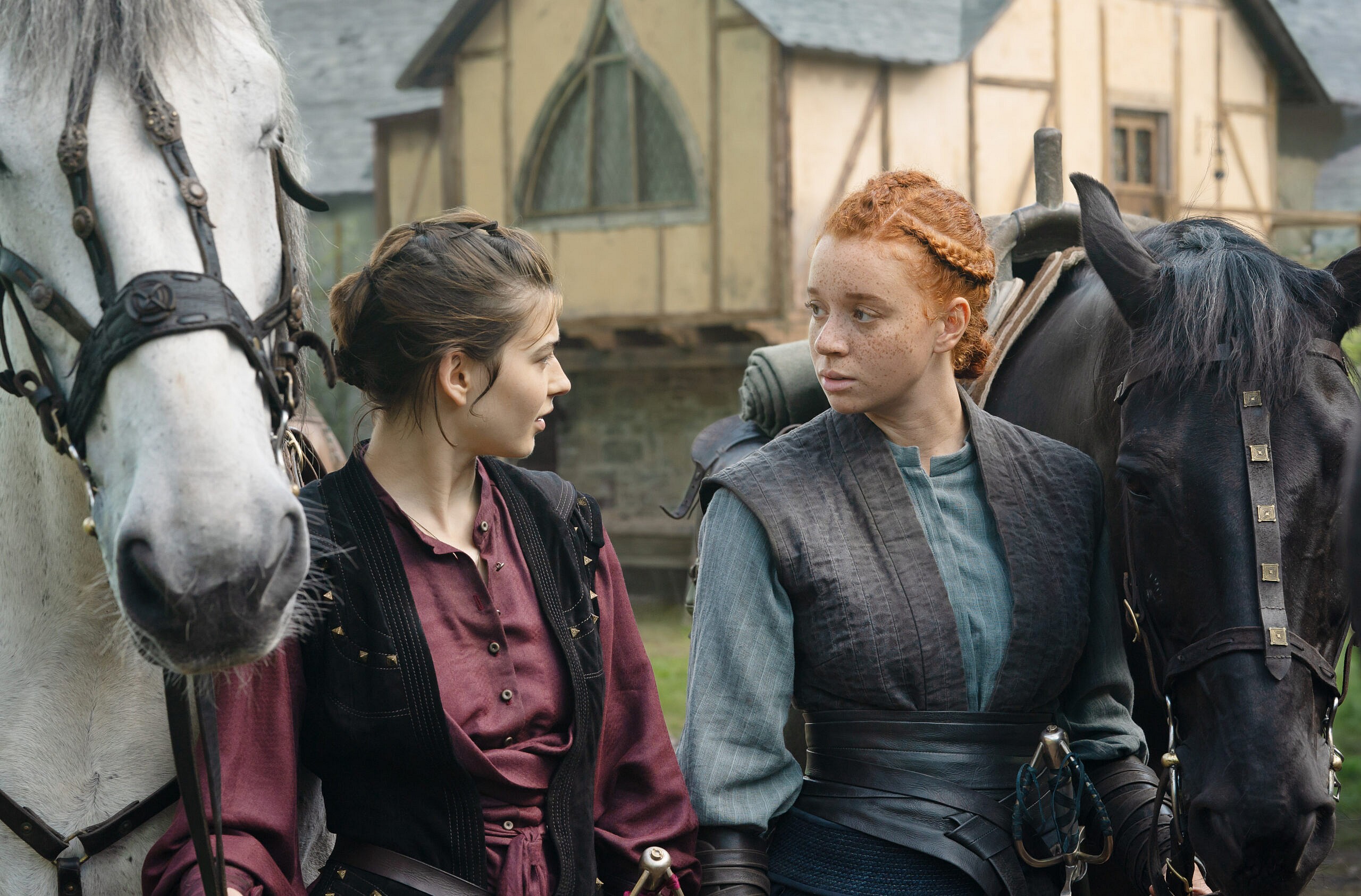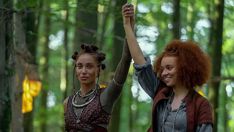 (L-R): Scorpia (Adwoa Aboah) and Jade (Erin Kellyman) in Lucasfilm's WILLOW exclusively on Disney+. ©2022 Lucasfilm Ltd. & TM. All Rights Reserved.