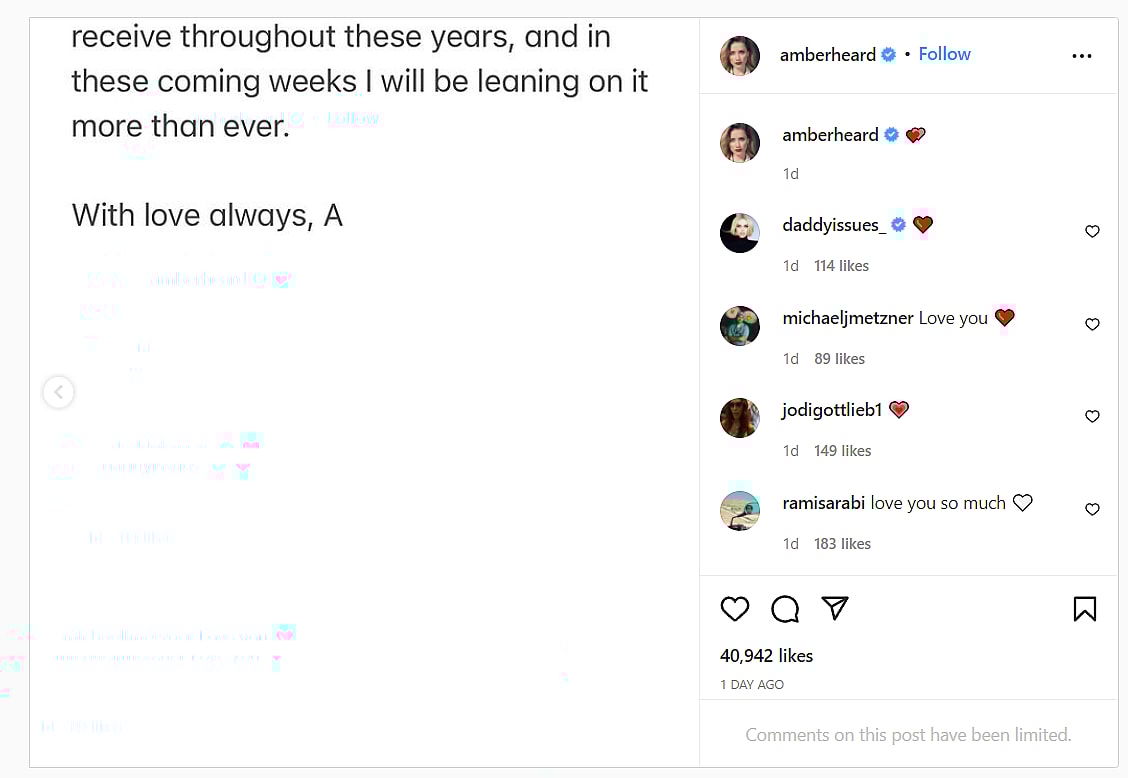 Heard then wrote, “I have always maintained a love for Johnny and it brings me great pain to have to live out the details of our past life together in front of the world.”