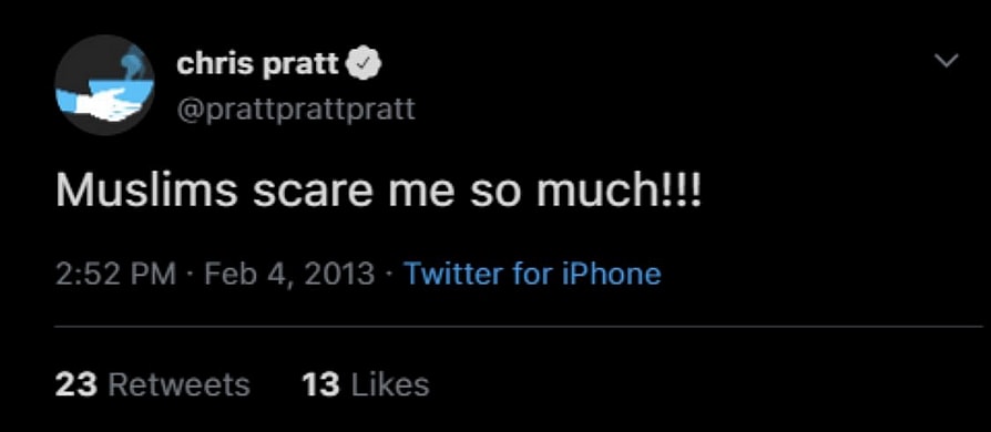 Interestingly, one tweet proven to have actually been published by Pratt was also cited, alongside the fake tweets, as justification for this latest cancellation campaign.