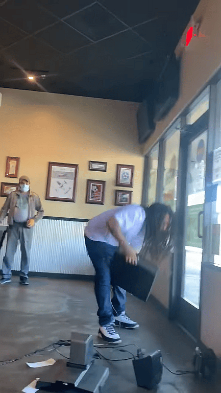 According to ViralHog, the “customer was mad because they messed up on his order twice. They then began to remake his order and a few minutes later, he asked for a refund. Since it was an online order, they said they couldn’t give him a refund. He got upset after asking multiple times for a refund and then grabbed the register and threw it on the group a couple of times and then through the window. He ran out and drove off.”