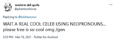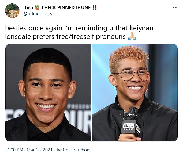 On March 18th, a fan of Keiynan Lonsdale, the actor best known for playing Kid Flash on The CW’s The Flash, took to their personal twitter to remind their followers “that keiynan lonsdale prefers tree/treeself pronouns”