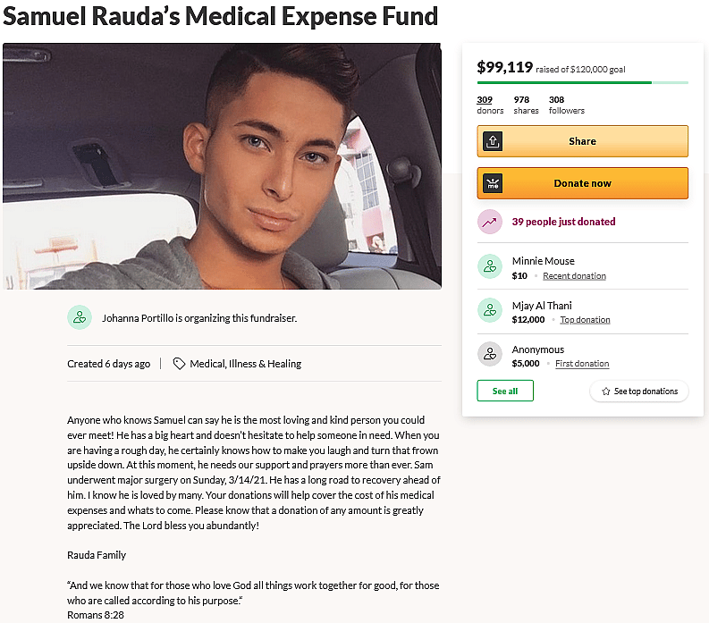 Of course, such a surgery isn’t cheap. Lucky for Rauda, his clientele features a number of wealthy celebrities, including Kylie Jenner, who leapt to his aid … by asking her fans to donate to a GoFundMe.