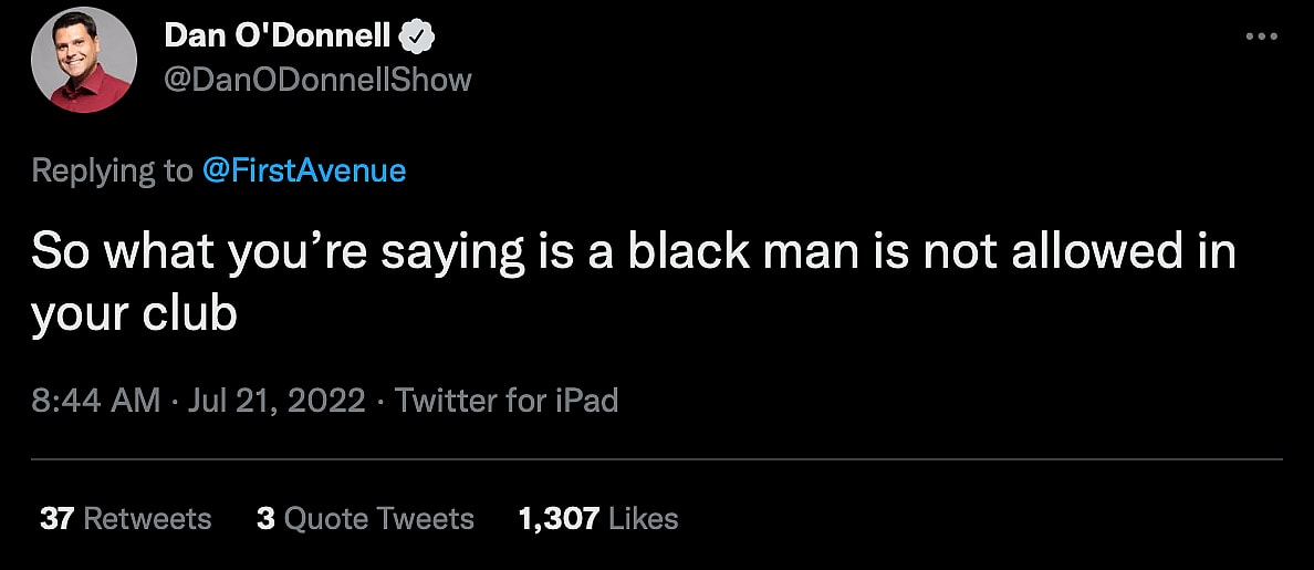 “So what you’re saying is a black man is not allowed in your club,” pointed out radio show host Dan O’Donnell.
