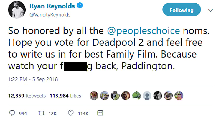 A twitter war between @VancityReynolds and @paddingtonbear is what the world needs