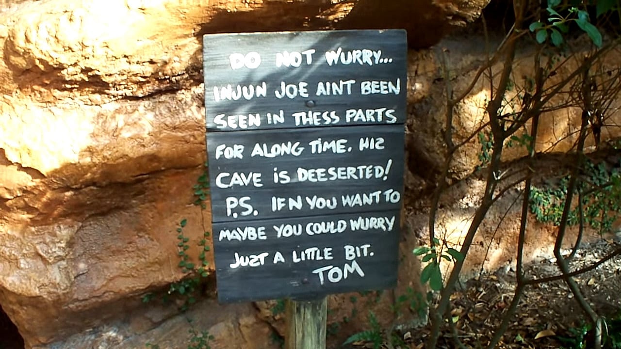 The signage denoting the location as Injun Joe’s Cave has also been removed wholesale from the location’s entrance.