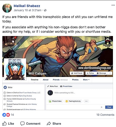 Malikali Shabazz then got his friends to gather their digital torches to pressure Caligan’s employer, Short Fuse Media Group.