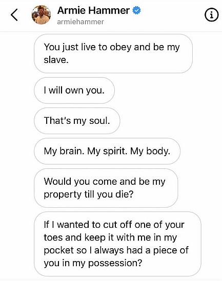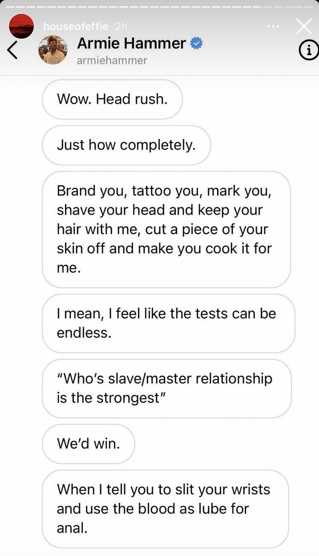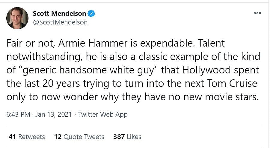 In response to these alleged leaked DMs, Mendelson wrote on Twitter, “Fair or not, Armie Hammer is expendable.”