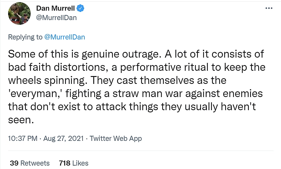Maybe the most hilarious part of Murrell’s entire thread is that a good number of the replies to him are people who “have three or four things to say…who then spread that message to every corner of the internet.”