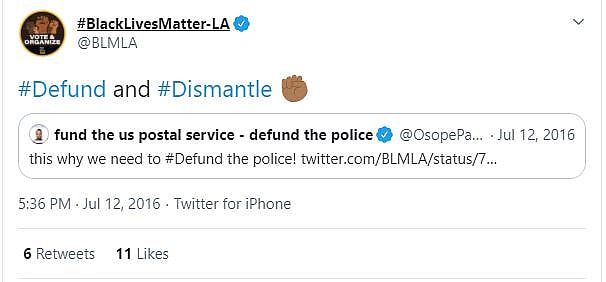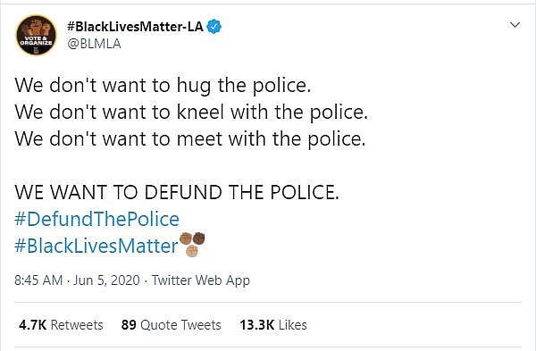 It also encourages individuals to support the Black Lives Matter organization that advocates for the defunding of police departments.