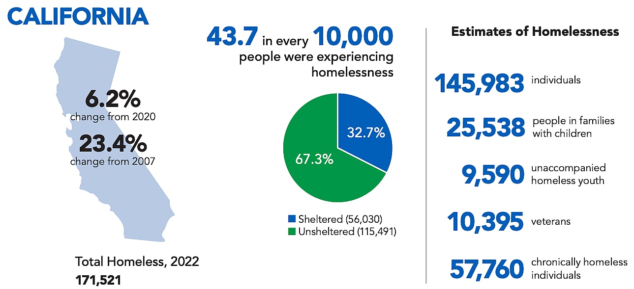 Further, the study revealed that the homeless population in California grew just over 6% since 2020, including individuals, people in families with children, unaccompanied homeless youth, veterans, and chronically homeless individuals.