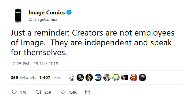 While Nasser did in fact tag creators and professionals associated with Image while discussing Layman, the tweets were not “tattling,” but rather asking for clarification as to the acceptability of Layman’s public behavior while representing Image: