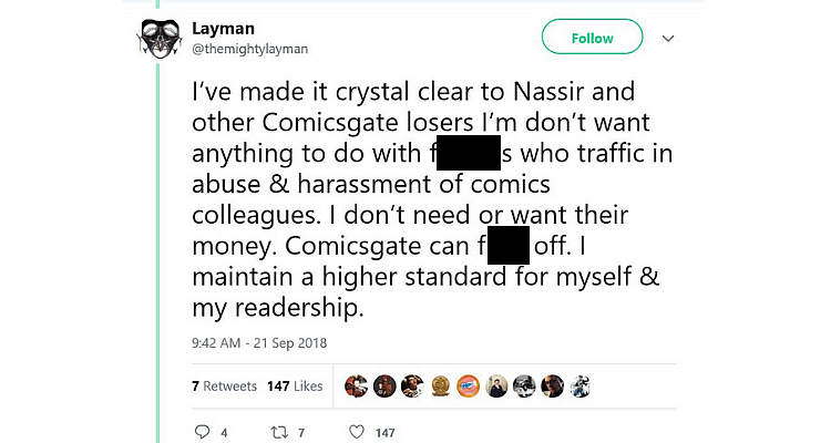 Layman’s rant continues further, devolving into tired strawman arguments against Comicsgate (all of which have been regularly and definitively disproven) and more personal insults: