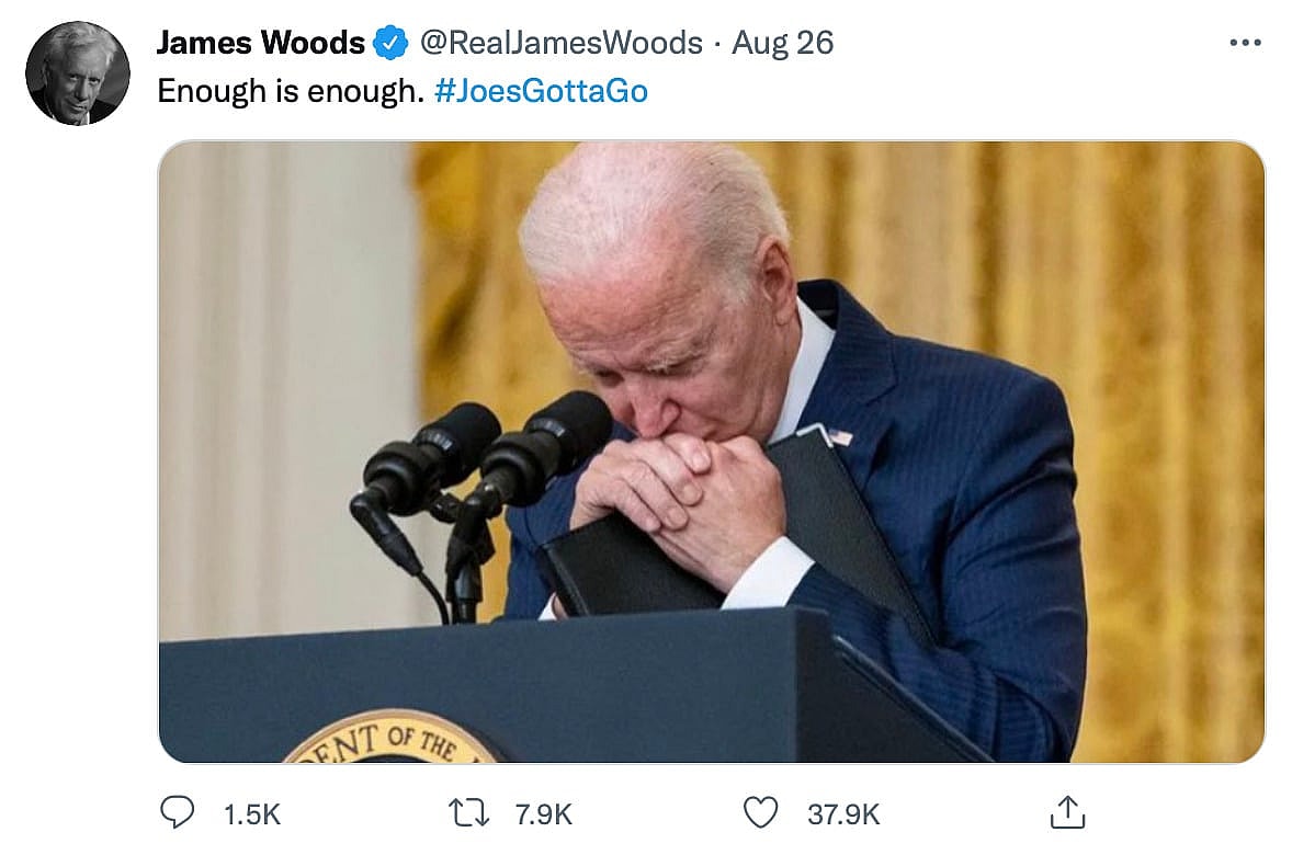 In this particular tweet, James Woods wrote “Enough is enough,” whilst also adding the #JoesGottaGo hashtag, and thus reinforcing his stance on the resignation of President Biden.