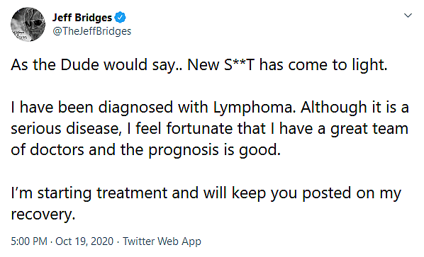 Jeff Bridges Reveals Positive Lymphoma Diagnoses