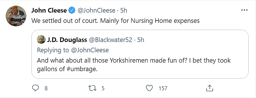 Cleese would continue mocking Azaria’s apology responding to a number of people on Twitter.