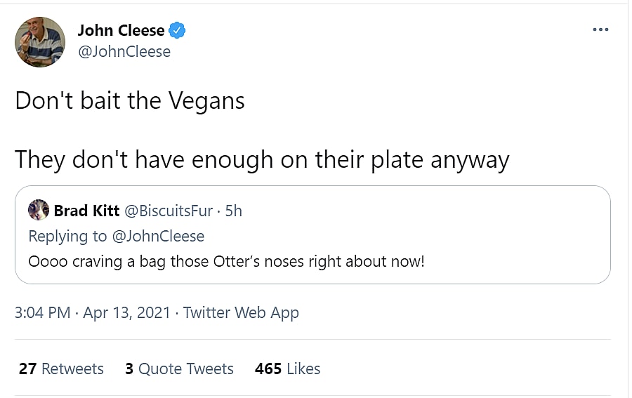 Finally, he wrote, “Don’t bait the Vegans. They don’t have enough on their plate anyway.”
