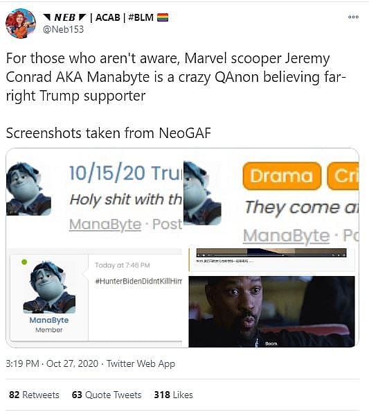 The evidence from Twitter user @Neb153 are a number of screenshots from the video game forum NeoGAF, where he has commented on the alleged leaks of Hunter Biden’s laptop as well as posts discussing the targeting of Chris Pratt and Joe Biden’s comments regarding “white supremacy.”
