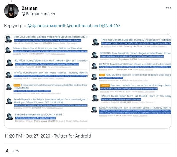 Twitter user @Batmancanceeu would post a screen shot of a number of other forum posts from NeoGAF.