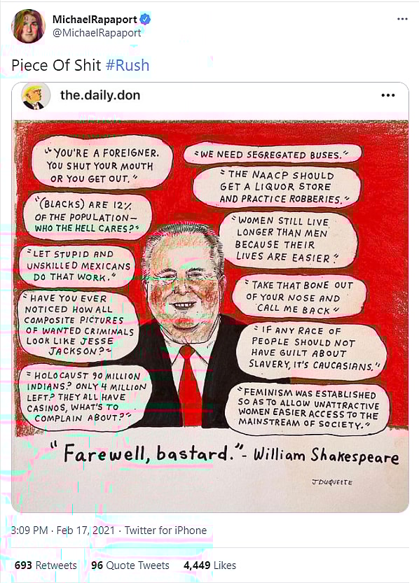 Related: Hollywood Celebrities Celebrate The Death Of Radio Host Rush Limbaugh
