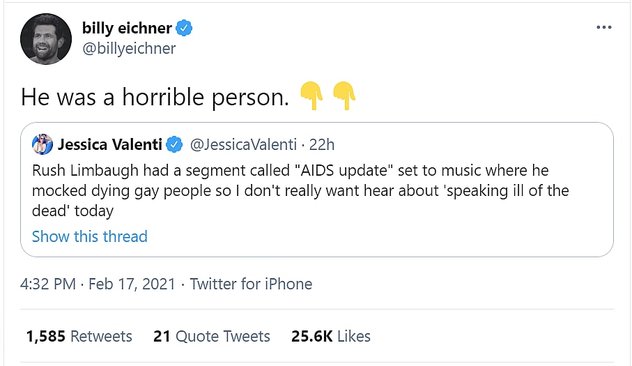 More Hollywood Celebrities And Elite Lampoon Rush Limbaugh Following His Death