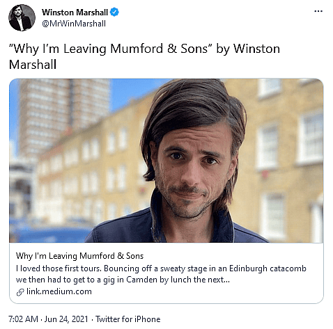 That said, Marshall’s decision to leave Mumford and Sons was ultimately the result of yet another successful cancellation attempt by the woke mob. At least the banjoist seems to have made peace with this fact.