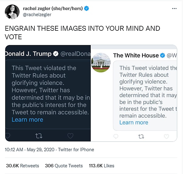 Back in May 2020, Zegler encouraged her followers to vote out Donald Trump sharing images of Twitter removing tweets from President Donald Trump.