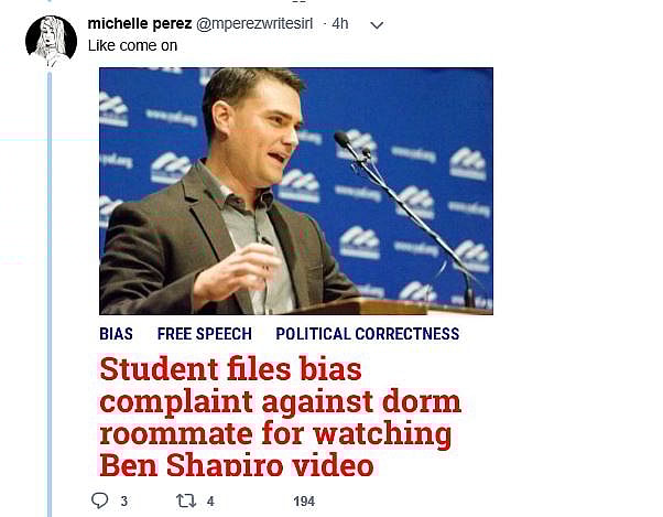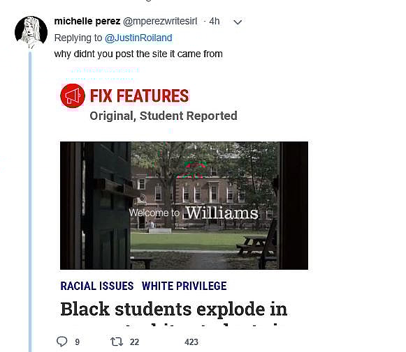 Perez specifically attacked Roiland for sharing the article from The College Fix and proceeded to post a number of photos from other articles on the website. Here’s just a couple of Perez’s tweets: