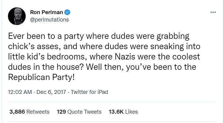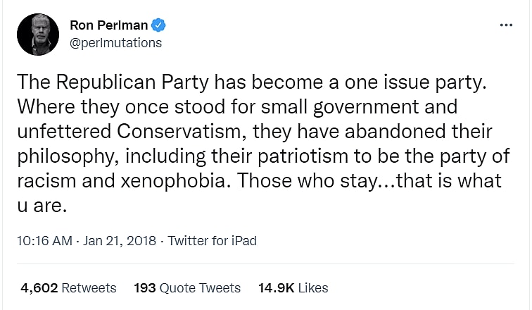 Perlman has made his disdain for Republicans, Donald Trump, and Trump supporters known over the past couple of years.