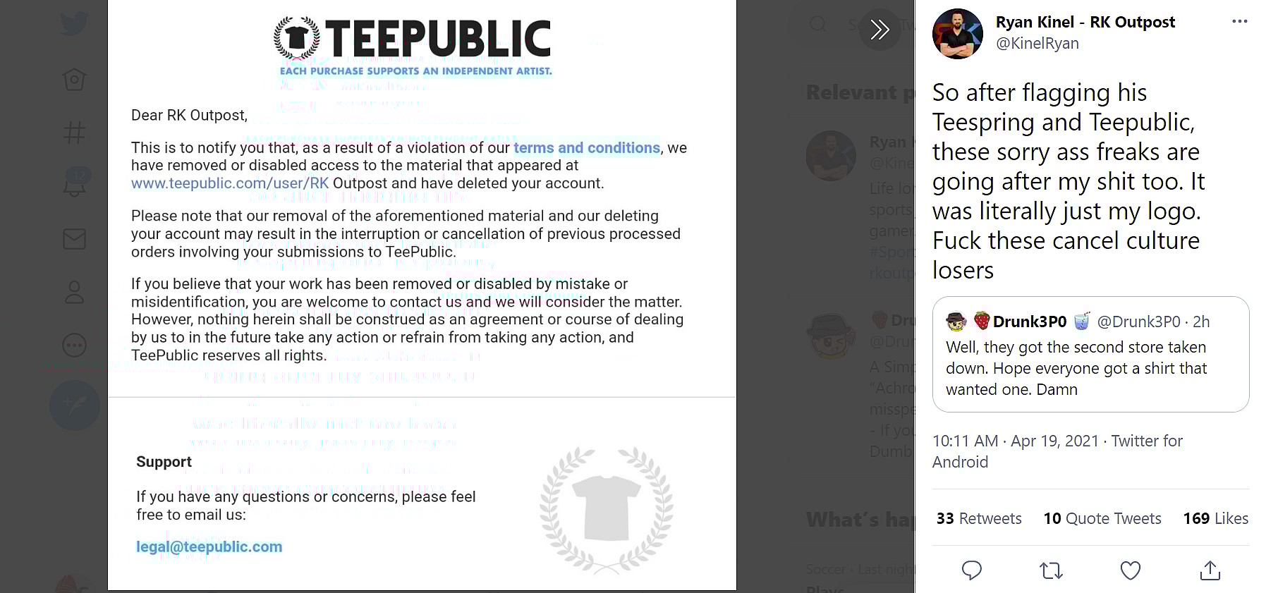 What do you make of TeePublic shutting down Ryan Kinel’s store?
