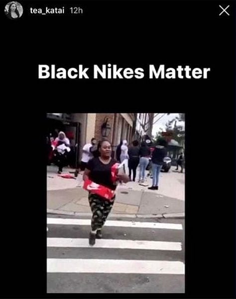 She also posted a photo of a woman looting a shoe store with a box of Nikes in her hands. She captioned that post “Black Nikes Matter.”
