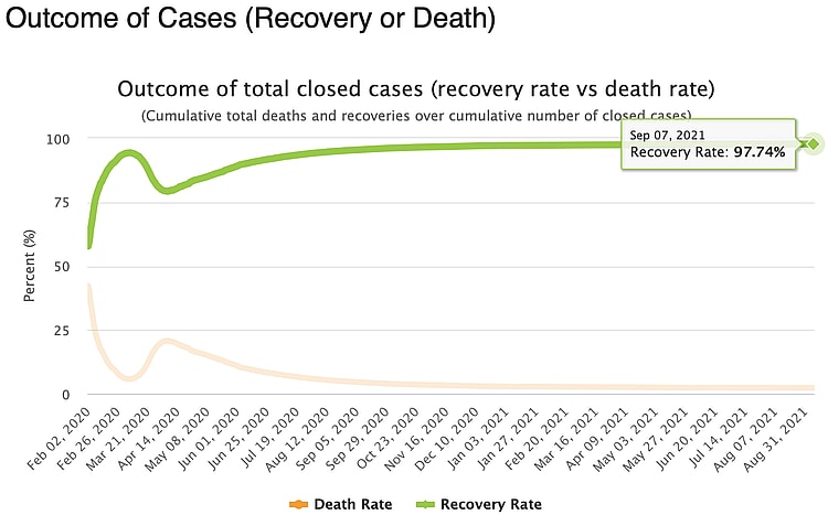 According to the latest report by Worldometer, as of the 7th of September, closed COVID-19 cases have produced an almost ridiculously high recovery rate of 97.74%.