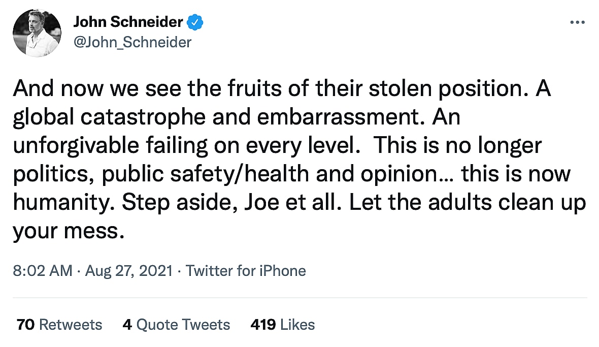 As for Afghanistan itself, following the tragic bombing at Kabul International Airport in Afghanistan in which members of the U.S. Marine Corps were confirmed to have lost their lives, Schneider recently took to social media to express his disappointment in the Biden Administration’s handling of the military’s withdrawal from the country .