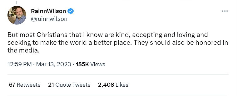 Caviezel is not the only actor to talk about Christian bigotry in Hollywood. Rainn Wilson, known for his role as Dwight Schrute on The Office, posted to Twitter in March about the subject.