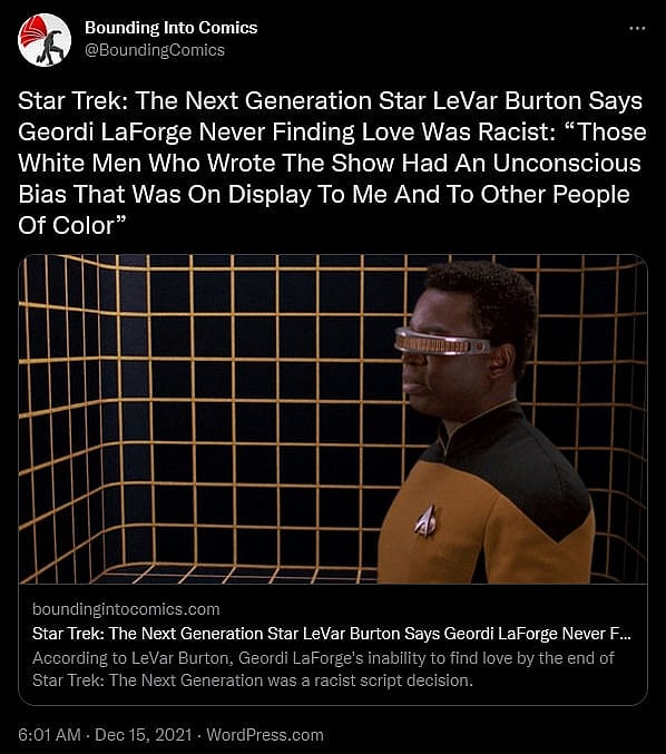 RELATED: Star Trek: The Next Generation Star LeVar Burton Says Geordi LaForge Never Finding Love Was Racist: “Those White Men Who Wrote The Show Had An Unconscious Bias That Was On Display To Me And To Other People Of Color”