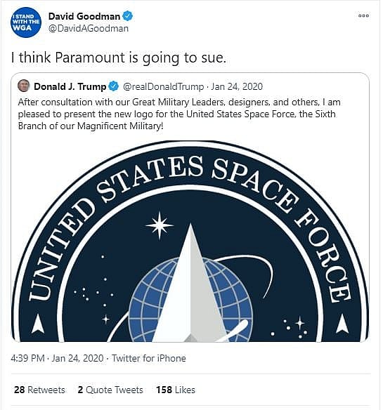 The calls to sue became prominent back in January 2020, when President Donald Trump released the new Space Force logo on Twitter stating, “After consultation with our Great Military Leaders, designers, and others, I am pleased to present the new logo for the United States Space Force, the Sixth Branch of our Magnificent Military!”