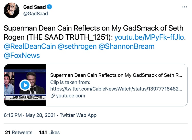 However, as Cain very eloquently expressed, Saad conversely castrated Rogen on Twitter.