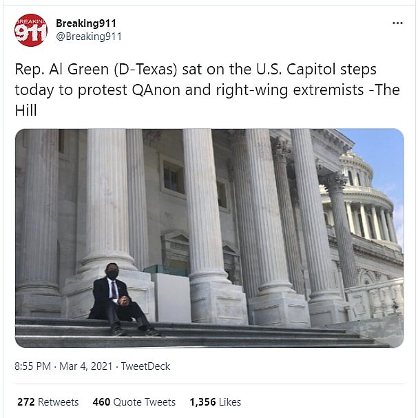 Texas Democrat Al Green decided to protest an alleged threat to the United States Capitol building.