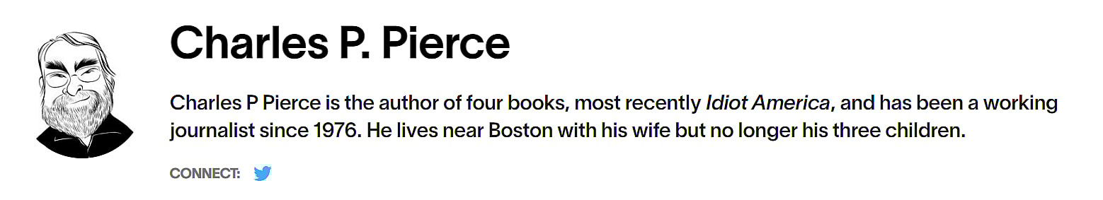 Charles P. Pierce, you are a complete and utter idiot. But it’s not just you that are an idiot. The fact this got past editors at Esquire makes them big dumb dumbs too.