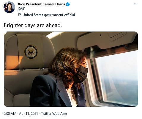 On April 11th, Vice President Kamala Harris posted (or rather, more likely, one of her staffers) an image of herself looking out the window of Air Force One alongside the caption “Brighter days are ahead.”
