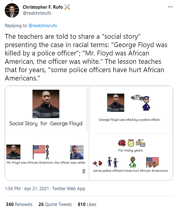 But before they get to the Pyramid of Hate, they are specifically told to show students a slide deck titled “Social Story for George Floyd.”