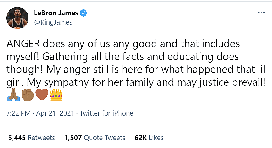 In a follow-up tweet he wrote, “ANGER does any of us any good and that includes myself! Gathering all the facts and educating does though! My anger still is here for what happened that lil girl. My sympathy for her family and may justice prevail!”