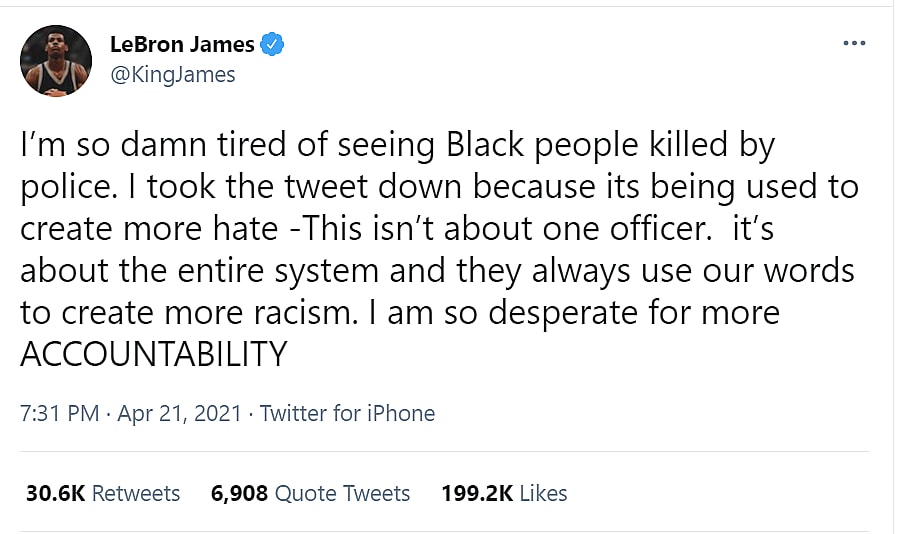 If LeBron actually believes in accountability, he wouldn’t have lied about his original tweet. It was clearly about one officer. You shared his image and threatened him.