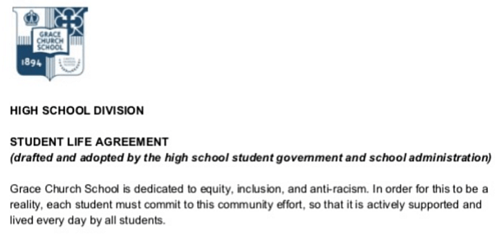 According to Rossi, “Every student at the school must also sign a “Student Life Agreement,” which requires them to aver that “the world as we understand it can be hard and extremely biased,” that they commit to “recognize and acknowledge their biases when we come to school, and interrupt those biases,” and accept that they will be “held accountable should they fall short of the agreement.”