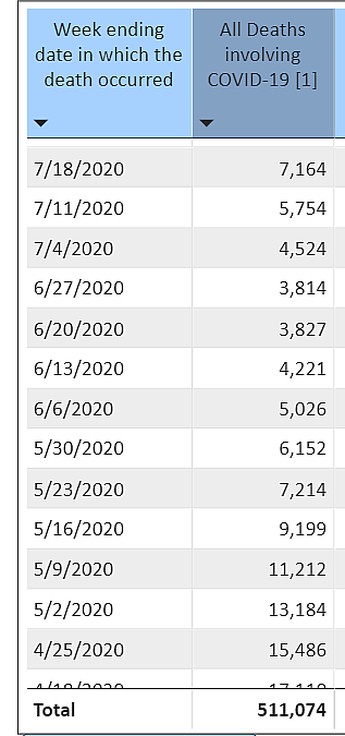 As of March 12th, the CDC reports that there are 511,074 deaths involving COVID-19. The CDC notes these deaths are “confirmed or presumed COVID-19.”