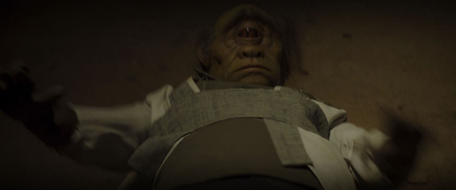 While the Mandalorian makes short work of Koresh’s thugs, Leguizamo’s character attempts flee, but it is to no avail. The Mandalorian quickly catches up to him, then hangs him by his feet to a light post where he leaves him to be devoured by a number of mysterious creatures.