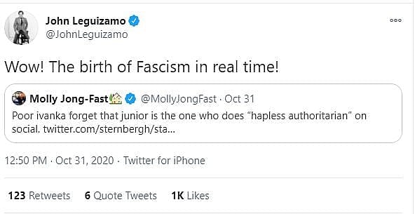 Leguizamo responded to that tweet writing, “Wow! The birth of Fascism in real time!”