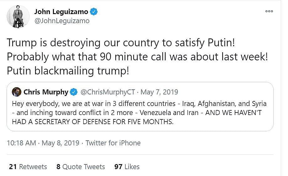 Back in May 2019, the Star Wars actor said, “Trump is destroying our country to satisfy Putin! Probably what that 90 minute call was about last week! Putin blackmailing Trump!”
